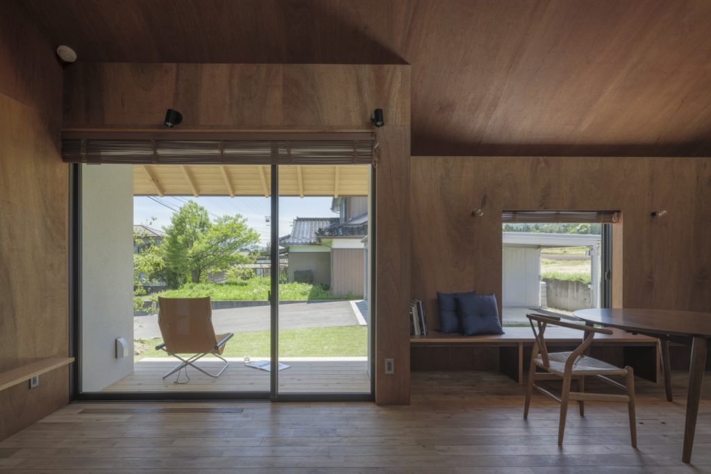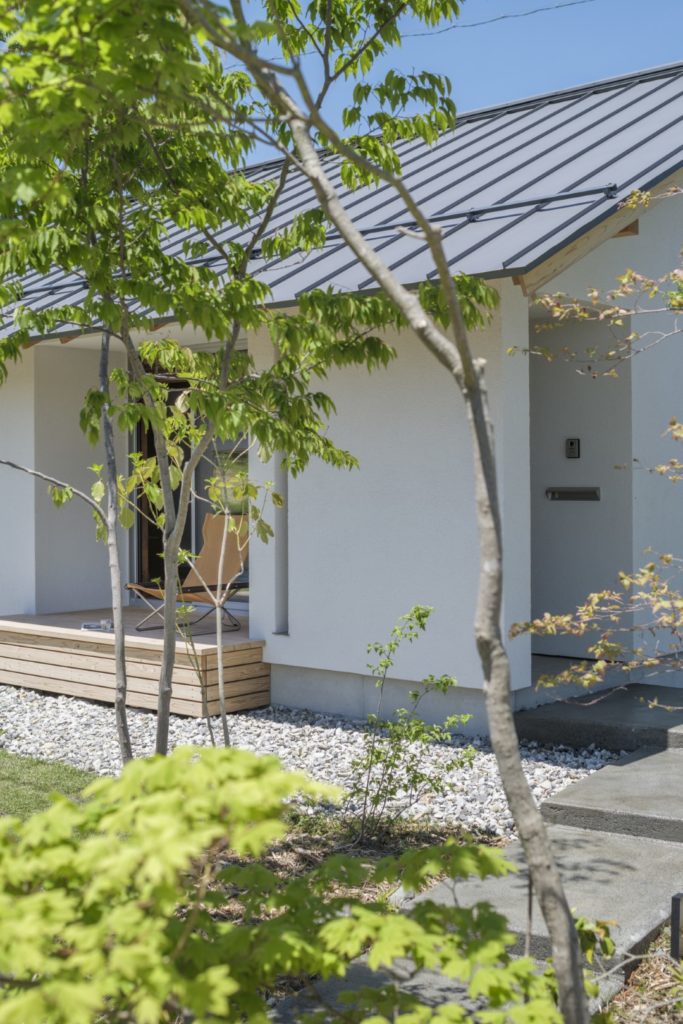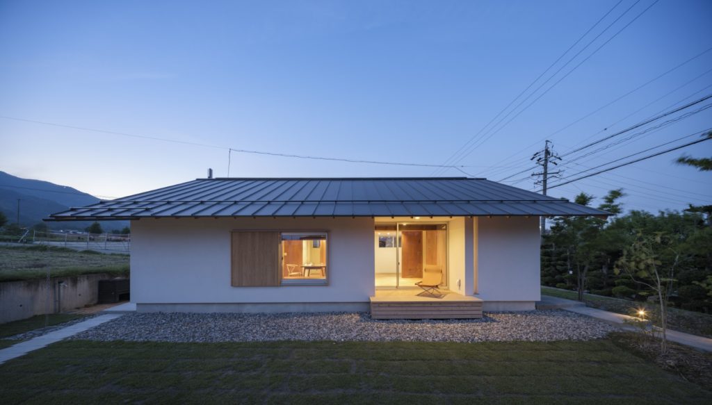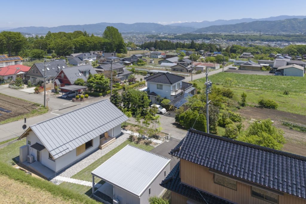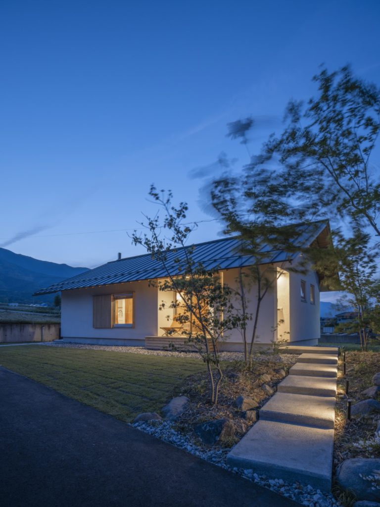 周辺は果樹園や畑が広がり、その中にある住宅地の一画に建つ平屋の小さな住宅である。本敷地も元々は畑であったため、風景に馴染むように素朴でシンプルな切妻屋根の住宅とした。